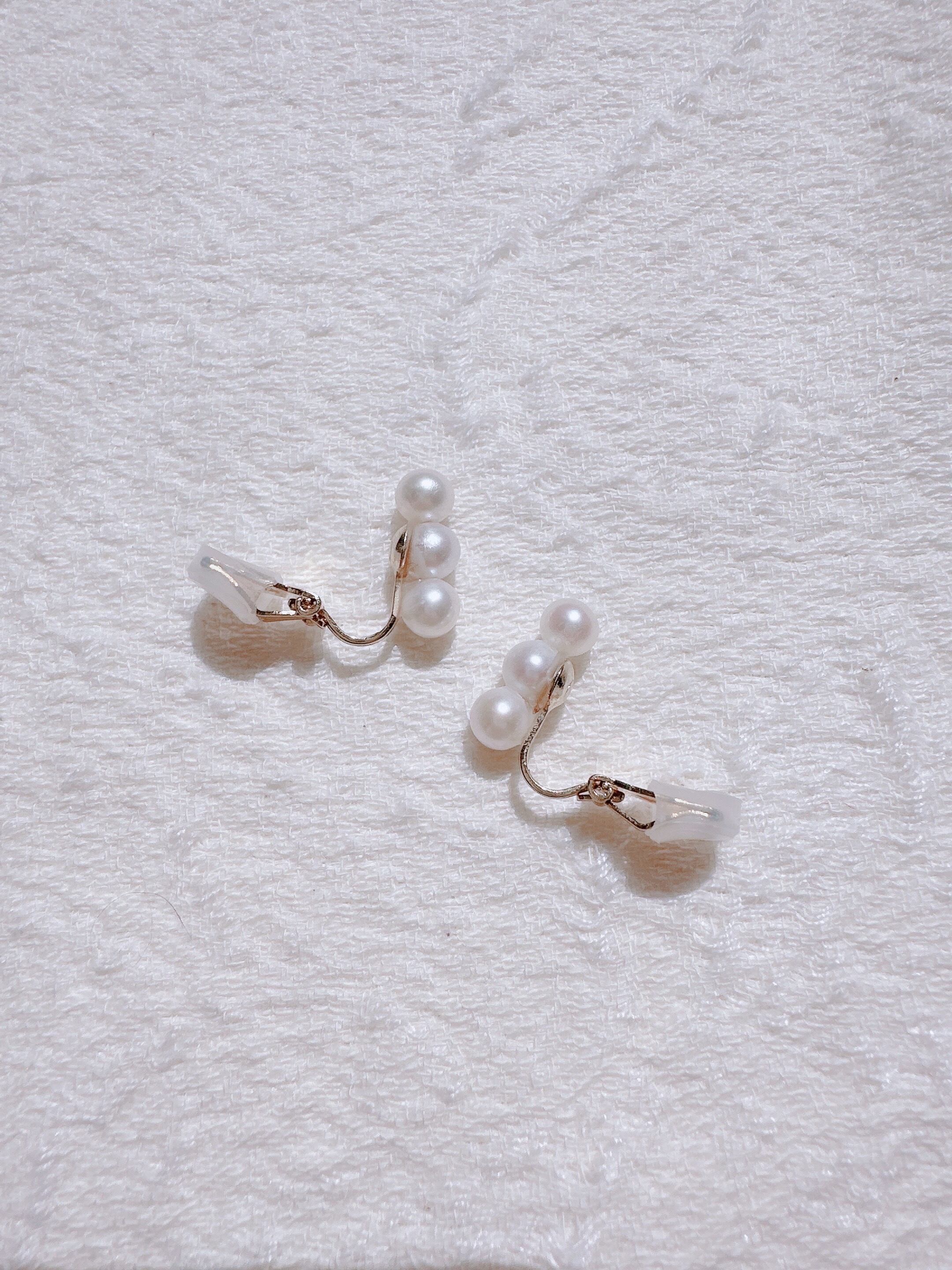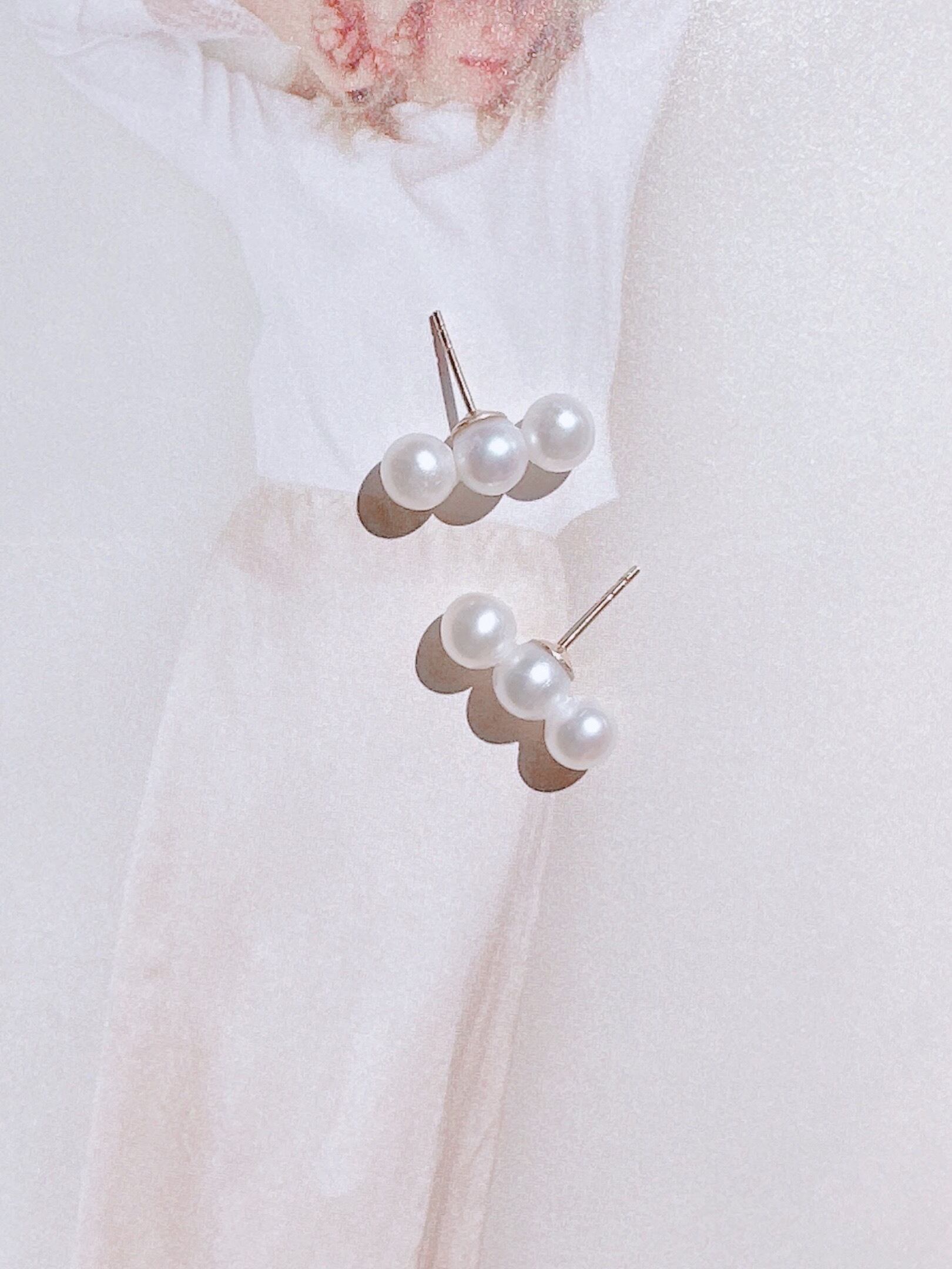 およそ5㎜の淡水真珠の連なるパールピアスは日常使いしやすく、さり気ない上品さと華奢さを引き立てててくれます。